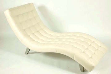 29. Liege THONET Chromgestell Rundrohr seitlich gebogen, Lederauflage weiß
