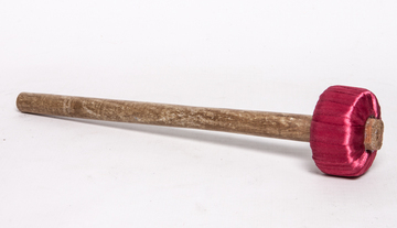 21. Tischgong Messing, runder Gong, hängend in Ständer, mit Schlegel, 32x22
