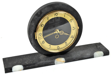 6. P- Tischuhr / Kaminuhr, grüner Marmor mit Messing, silbernes Ziffernblatt