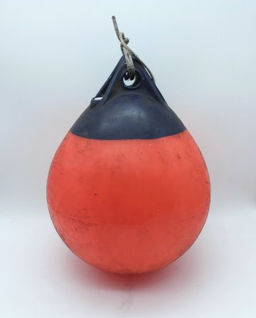 35. Fahrradkindersitz, blaue Kunsstoffschale mit Sicherheitsschloss