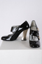 Spangenpumps schwarz Lackleder m. silbernem Absatz u. Knöpfen Hartian-Bourdin