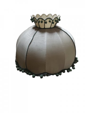 Kuppelschirm m. Krönchen weiß Wildseide, grüne Bommelborte, ø47, h 29cm