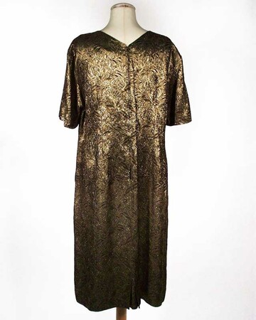 Kleid geblümt gold Brokat Kurzarm V-Ausschnitt ungefüttert
