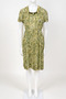 Kleid gemustert grün Kurzarm Faltenrock eckiger Ausschnitt