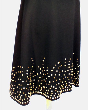 Complet 3tlg bestickt schwarz/gold u.silber Perlen Kragen Pelz Lackgürtel Kleid Mantel/Jean Charma