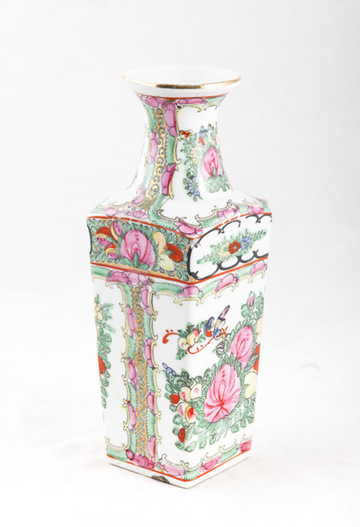 Vase ASIA, Keramik, eckige Form, asiatisch bunt bemalt, H=26cm