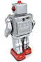 Roboter ELECTRON ROBOT, Blech, mit MG, silber, Füße rot, Brust aufklappbar, H30, 1 Antenne am Kopf abgebrochen
