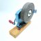 Schleifstein, blau mit roter Handkurbel, auf Holzlatte montiert, L20cm, Ø13cm