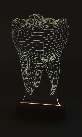 LED ZAHN DISPLAY, Acryl transparent Gitternetz LED Lampe, ovaler Holzsockel natur, USB-Kabel Schalter mit Farbwechsler, Netzstecker, H29