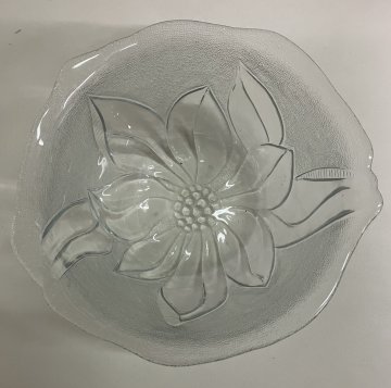 Schale, Glasschale BLÜTE, hoher Rand, transparente Blüte innen, H 12cm, Ø 22cm