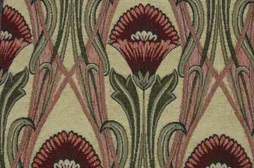 Sofakissen JUG Gobelin beige, stilisierte Blumen, dunkelrot, grün, altrosé, Bordüre, Rückseite rot, 55x55cm