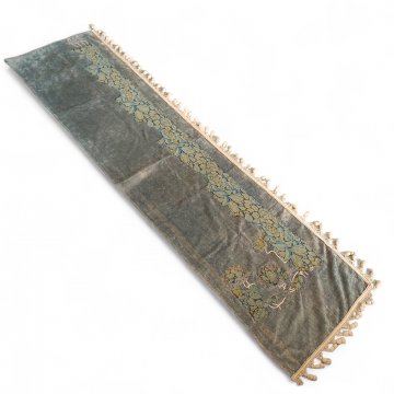 Querbehang JHW 60x250cm Plüsch taubenblau, aufgenähte florale Bordüren, Borte beige mit Bommel