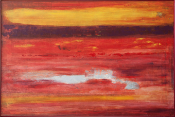 Bild (mR) Falling Silver, Acryl auf Leinwand, silber, rot, dunkelbrauner Schattenfugenrahmen, 105x85, Original Berthold