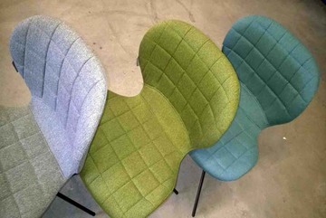 Stuhl OMG, Polsterschale je zweimal hellgrau, hellgrün und petrolblau(Foto), Metallgestell schwarz ZUIVER