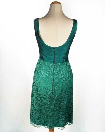 Cocktailkleid grün Wildseide Trägerkorsage spitz zulaufend Tüllspitze unterlegt/Chiwitt