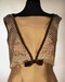 Abendkleid beige tailliert ohne Arm langer Bahnenrock ausgestellt Weste gold