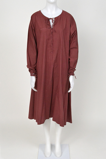 Unterkleid weinrot Baumwolle Halsschlitz geschnürt angeschnittener Langarm