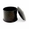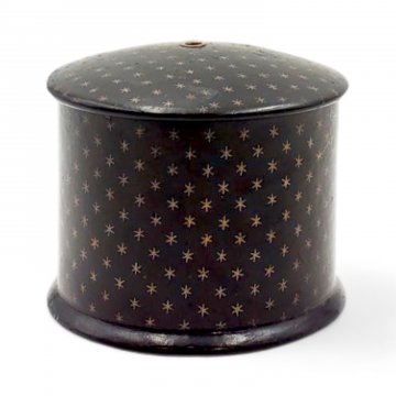 Dose, Pappe Lackbezug schwarz mit kleinem Sternenmuster gold, ø7 H5