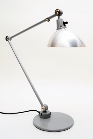 Tischlampe MIDGARD TYP 551, Gelenkarm Metall grau gepulvert, Tellerfuß ø25, Gelenk drehbar, Schirm Alu natur ø22, 1 flg. E27 max.60W, Textilkabel schwarz, H90