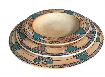 Speiseteller KAYENTA, Keramik, beige, braun, Atztekenmuster, Service, H 2cm, ø 26cm, WAECHTERSBACH1 Teller gebrochen unf geklebt