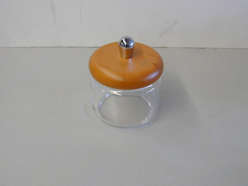 Parmesantopf, Glasschale m. Holzgriff u. Chromdeckel