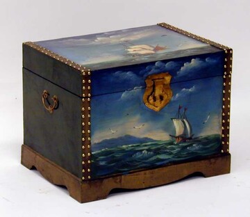 Truhe, Blechverkleidung, Holzleistenverstrebung...