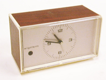 8. Wecker WIGOLARM, Batteriebetrieb, K.stoff weiß/braun, L12xB7